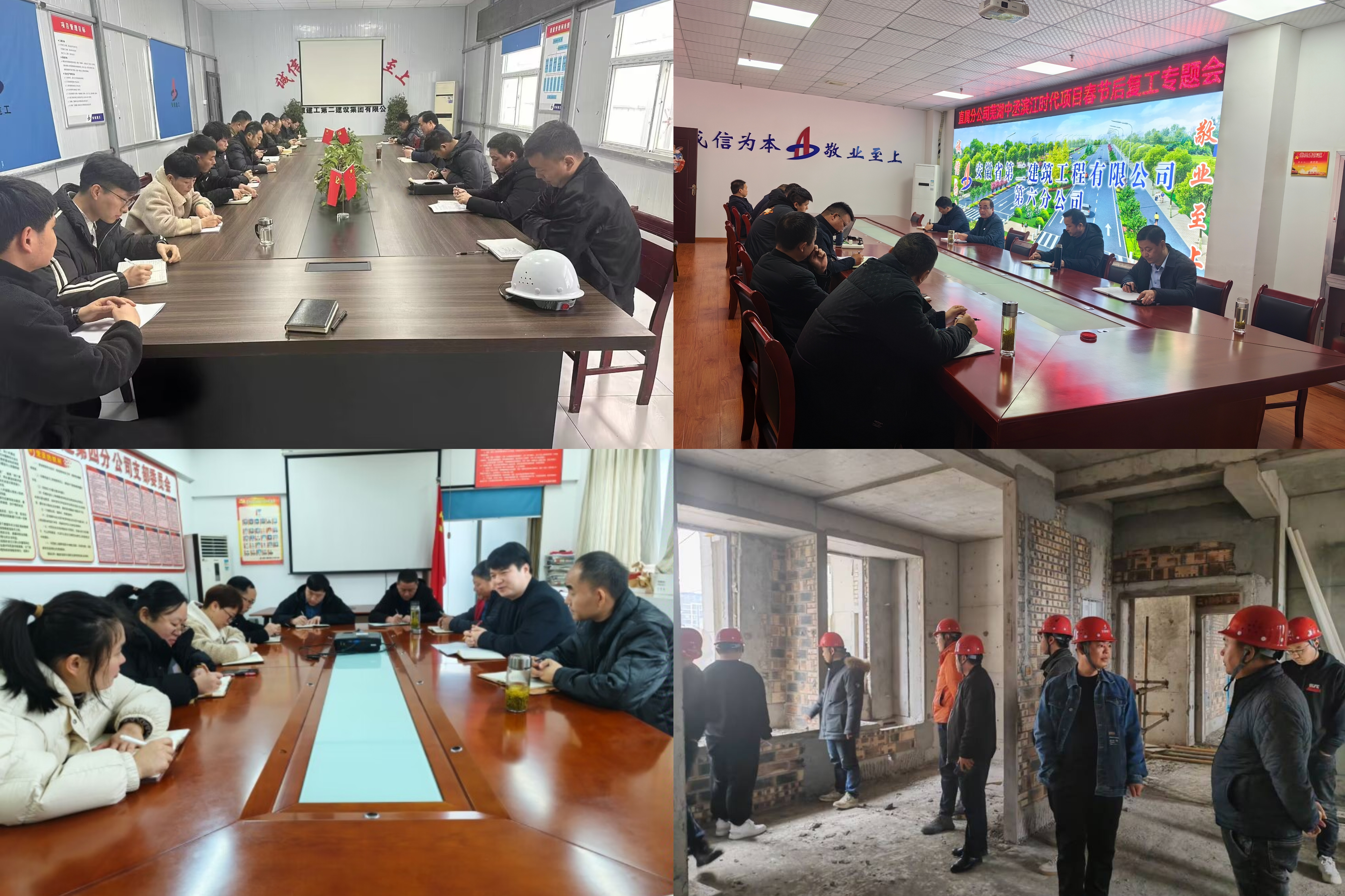 新春伊始,萬物復(fù)蘇。隨著春節(jié)假期的結(jié)束,建工二建所屬各單位迅速調(diào)整狀態(tài),對項(xiàng)目開展復(fù)工復(fù)產(chǎn)大檢查,召開年后復(fù)工復(fù)產(chǎn)工作會議,總結(jié)經(jīng)驗(yàn),舉一反三,凝聚合力,系統(tǒng)謀劃2024年度重點(diǎn)工作任務(wù),統(tǒng)籌抓好節(jié)后快速復(fù)工復(fù)產(chǎn)和安全生產(chǎn),助力公司加快生產(chǎn)經(jīng)營步伐,為實(shí)現(xiàn)一季度“開門紅”奠定基礎(chǔ),為實(shí)現(xiàn)全年目標(biāo)任務(wù)開好頭、起好步。