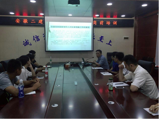 6月19日,安徽二建紀委對新入職員工進行了崗前廉潔從業教育培訓,首次將廉潔自律作為走上新崗位的第一課,引導和加強新員工在思想上牢固樹立“廉潔從業,遵紀守法”的廉潔意識,提高廉潔自律的辨識能力和自我約束力。