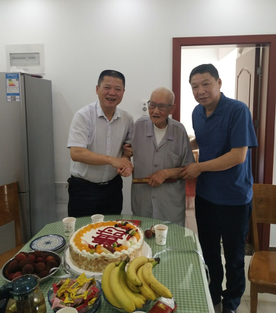 6月15日上午,公司黨委書記劉賢奇在工會主席李林、后勤綜合服務部支部書記、主管離休工作人員的陪同下,來到居住在高新區的離休老干部百歲老人李輝家中,送上生日壽桃蛋糕、慰問金和代表公司黨委對老人的生日祝福,祝愿老人壽比南山,福如東海。李輝,男,1919年7月1日出生,江蘇鹽城人,1945年4月1日參加新四軍抗日隊伍,1946年4月加入中國共產黨,出生入死63載,槍林彈雨,對黨忠誠,積極工作,勤勤懇懇,對企業發展建設作出應有貢獻。如今老人精神矍鑠,生活安逸,心情愉悅。劉賢奇一邊與老人真摯地交談,了解老人的身體健康狀況、長壽秘籍;一邊與老人分享中國改革開放翻天覆的變化,安徽二建66載的風雨歷程,目前企業已走向正常發展軌道,企業正處于轉型發展的關鍵時期,發展前景越來越好,希望老人事事順心,天天快樂,益壽延年。老人感謝劉書記和離休辦同志在自己百歲生日時給予的祝福,感謝公司黨委關心呵護,表示要堅定信念,永遠聽黨話,跟黨走,祝愿企業再創新的輝煌。