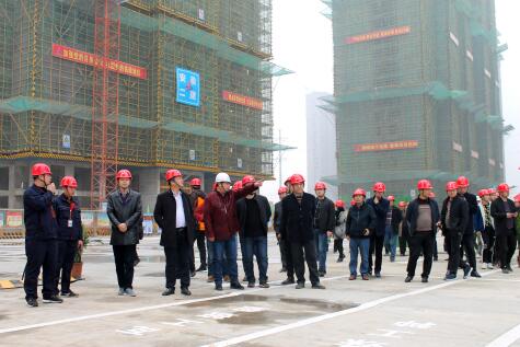 觀摩人員深入兩個項目現場,在項目負責人的陪同下觀摩了現場管理模式及管理經驗,并對參觀人員提出的問題進行了詳細解答。大家參觀了施工材料展示區、樣板展示區、土建結構展示區、整體預制墻板及二次結構施工樣板等技術。