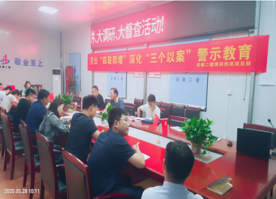 5月28日,公司財務總監項新元一行深入四分公司合肥麗豐璞羽西苑項目部開展以“三個以案”警示教育大宣講、大調研、大督查活動。項新元一行首先聽取了項目部關于開展“三個以案”的工作匯報。隨后,調研組帶領大家學習了安徽建工控股黨委關于深化“三個以案”警示教育大宣講和關于“工程建設領域廉潔風險防控清單”內容,同時進行了問卷調查,對項目關鍵崗位人員進行了談話。最后,項新元重申了建工控股紀委書記宋志華5月25日在該項目給公司中層干部提出的幾點要求,并對項目部提出了三點建議。