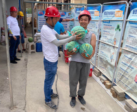 黃盱一行給項目員工送去慰問和關懷,準備了毛巾、風油精、十滴水、西瓜等防暑降溫用品,囑咐大家要合理安排工作時間,在做好工作的同時,加強自身防護。