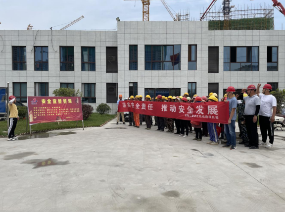 安全負責人趙志文帶領全體人員進行安全宣誓。項目經理徐良帶領全體人員在以“落實安全責任,推動安全發展”為主題的橫幅上簽名。
