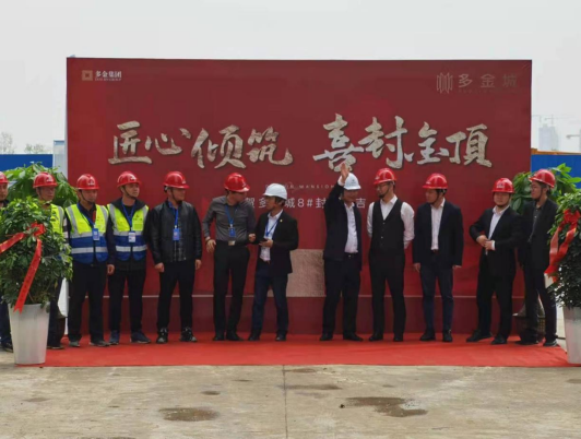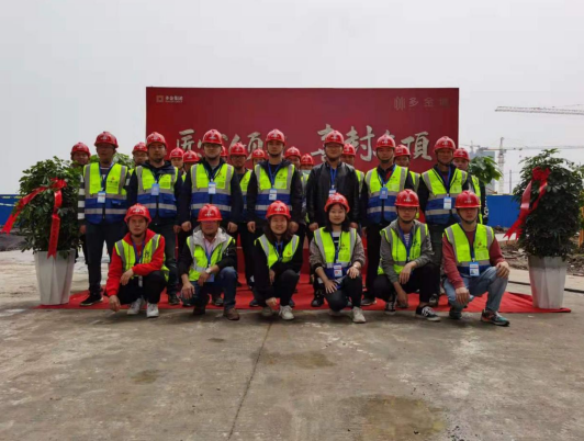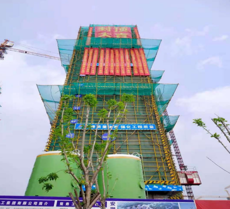 2021年4月27日10點28分,在隆隆炮聲中,伴隨著最后一方混凝土澆筑到位,一分公司承建的泗縣多金城項目首開之一的G8#樓舉行了隆重的封頂儀式。建設、監理、設計、勘察等參建單位及項目部全體員工參加了封頂儀式。