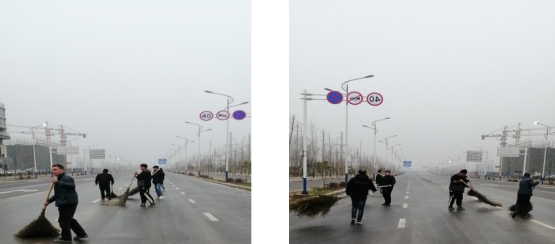 3月19日,二分公司琨宇悅湖城項目部與城管部門聯(lián)系主動承擔清掃陳集路和廬陽大道路面衛(wèi)生,項目管理人員在項目經(jīng)理姚鵬的帶領下,拿起掃把垃圾桶,清理下雨后路面留下的落葉及垃圾,大家干勁十足,落葉及垃圾很快得到清理,得到了城管部門的認可。