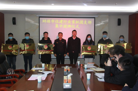 2021年2月2日上午,蚌埠市住房城鄉(xiāng)建設(shè)行業(yè)首批團(tuán)支部集中授牌儀式在蚌埠市住建局舉行。會議由蚌埠市住建局副縣級領(lǐng)導(dǎo)王明芳主持。蚌埠市住建局黨委書記、局長王家渠,黨委委員、副局長汪文學(xué);蚌埠市團(tuán)市委黨組副書記韓見,組織部部長、少年部部長雷蕾;蚌埠市建筑管理處黨委書記、主任唐士全,團(tuán)委書記韓道斌;蚌埠市住建系統(tǒng)團(tuán)工委書記鄒振飛同志出席授牌儀式。安徽二建公司蚌埠溪湖湖山春曉、山香安置房項(xiàng)目參加市住建行業(yè)首批團(tuán)支部集中授牌。