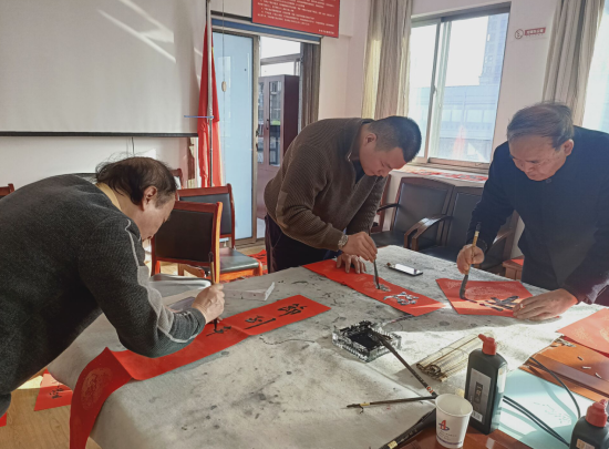 春節臨近,為營造喜慶、祥和、熱烈的新春氛圍,豐富分公司文化內涵,弘揚中華優秀傳統文化。1月29日下午,安徽二建四分公司黨支部組織開展“迎新送福飄墨香,結對共建揚清風”寫春聯送祝福主題黨日活動。活動邀請了安徽省新四軍歷史研究會淮海委員會會長張振山、副會長楊承愉,安徽省書法家協會會員牛中民、朱良謀等一行現場揮毫寫春聯,分公司機關近30余人參加了活動。