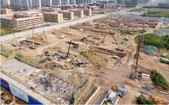 現(xiàn)場(chǎng)機(jī)械高立、人員涌動(dòng)