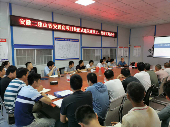 為提高項目管理人員及一線勞務人員裝配式建筑作業(yè)專業(yè)知識水平,強化質(zhì)量安全意識,確保生產(chǎn)順利進行,8月5日,安徽二建公司邀請合肥市裝配式建筑專家梁德江老師蒞臨蚌埠山香安置房項目進行裝配式建筑作業(yè)專項培訓。