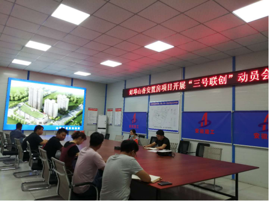 6月24日,一分公司黨支部書記倪海霞帶領機關人員赴蚌埠山香安置房項目,召開“三號聯創”動員會。