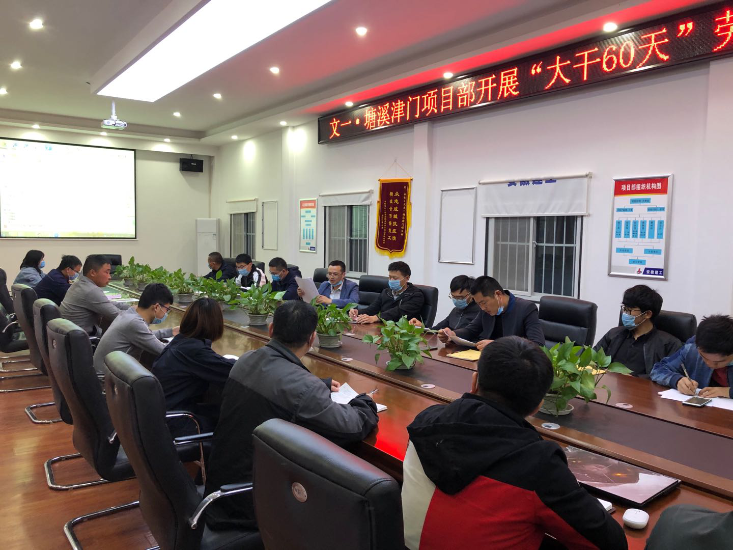 項目部以科學發展觀為指導,以安全質量環保和文明施工為前提,以施工進度為龍頭,以資源供給、有效協調為保證,充分激發員工的工作積極性、創造性,掀起苦干巧干、大干快上勞動熱潮,營造計劃科學、安排合理、保障有力、作業高效的工作氛圍。