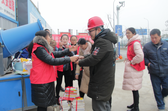 活動(dòng)現(xiàn)場(chǎng),項(xiàng)目部成員與志愿者們?cè)阱\門·繁華里工地門口支起愛(ài)心粥鋪,把一碗碗香暖四溢的臘八粥送到每一位民工手上,讓大家能夠在寒冷的冬季感受到社會(huì)的溫暖,體會(huì)到了社會(huì)各界對(duì)民工朋友們的關(guān)愛(ài),送粥的同時(shí),志愿者們還給民工朋友們送上各類書(shū)籍,讓民工朋友們也享受到閱讀的樂(lè)趣。