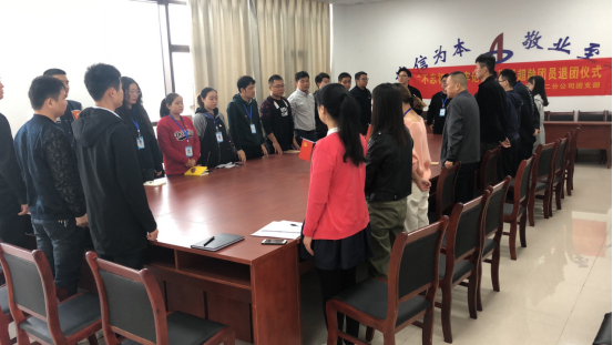 10月28日上午,二分公司團支部開展超齡團員退團儀式活動。分公司超齡退團青年、團干團員20余人參加會議,黨支部書記黃業云應邀參加會議。伴隨著激情澎湃的團歌唱響,二分公司超齡團員退團儀式正式開始。