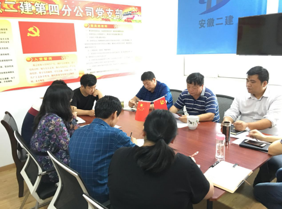 2019年5月27日上午,四分公司黨支部開(kāi)展了“黨員活動(dòng)日”活動(dòng),集中學(xué)習(xí)了建工控股黨委關(guān)于持續(xù)深入扎實(shí)學(xué)好用好黨章的文件,并組織黨員對(duì)照黨章查擺問(wèn)題,機(jī)關(guān)和合肥項(xiàng)目部黨員參加學(xué)習(xí),黨支部書記董建民主持活動(dòng)。
