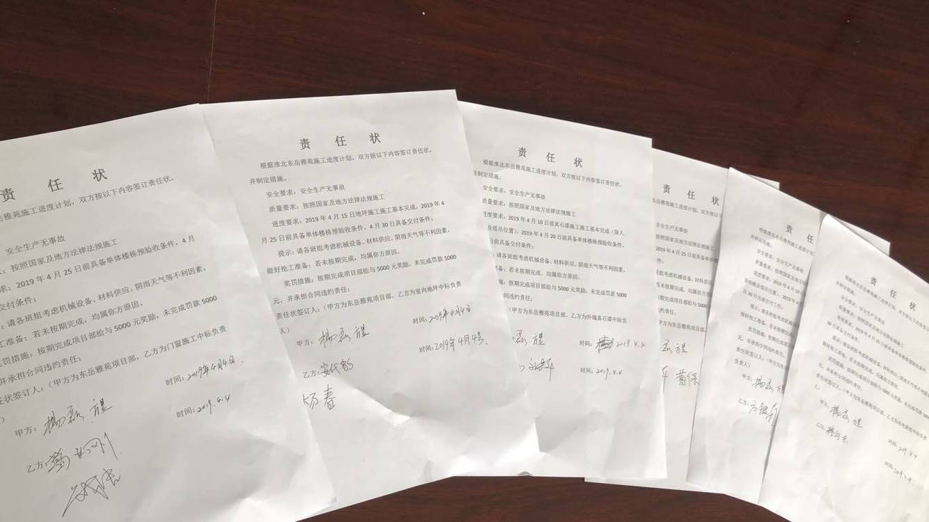 勞動競賽始初,項目部與屬班組簽訂“責任狀”,要求班組按照競賽要求,明確自身責任,施工生產目標,對施工結果進行考核,獎懲分明。淮北東岳雅苑項目臨近收尾,項目部按日劃分具體任務指標,實行每日晨會制度,讓當日任務組織者、實施者熟悉了解任務流程和要求,在此基礎上細化優化施工方案。勞動競賽期間恰逢“清明”、“五一”小長假,項目經理主動留守現場,帶隊不定期檢查各任務點質量,杜絕安全隱患,確保安全質量穩定。