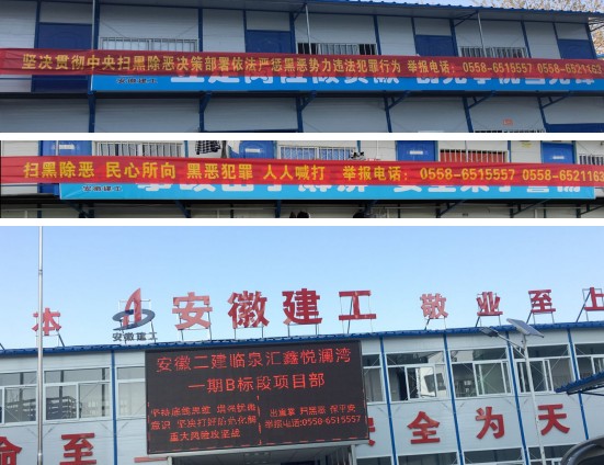 最后,任兵要求各班組長對本組工人宣傳落實國家“掃黑除惡”的政策,要求在顯眼位置懸掛“掃黑除惡”的條幅且附上舉報電話。