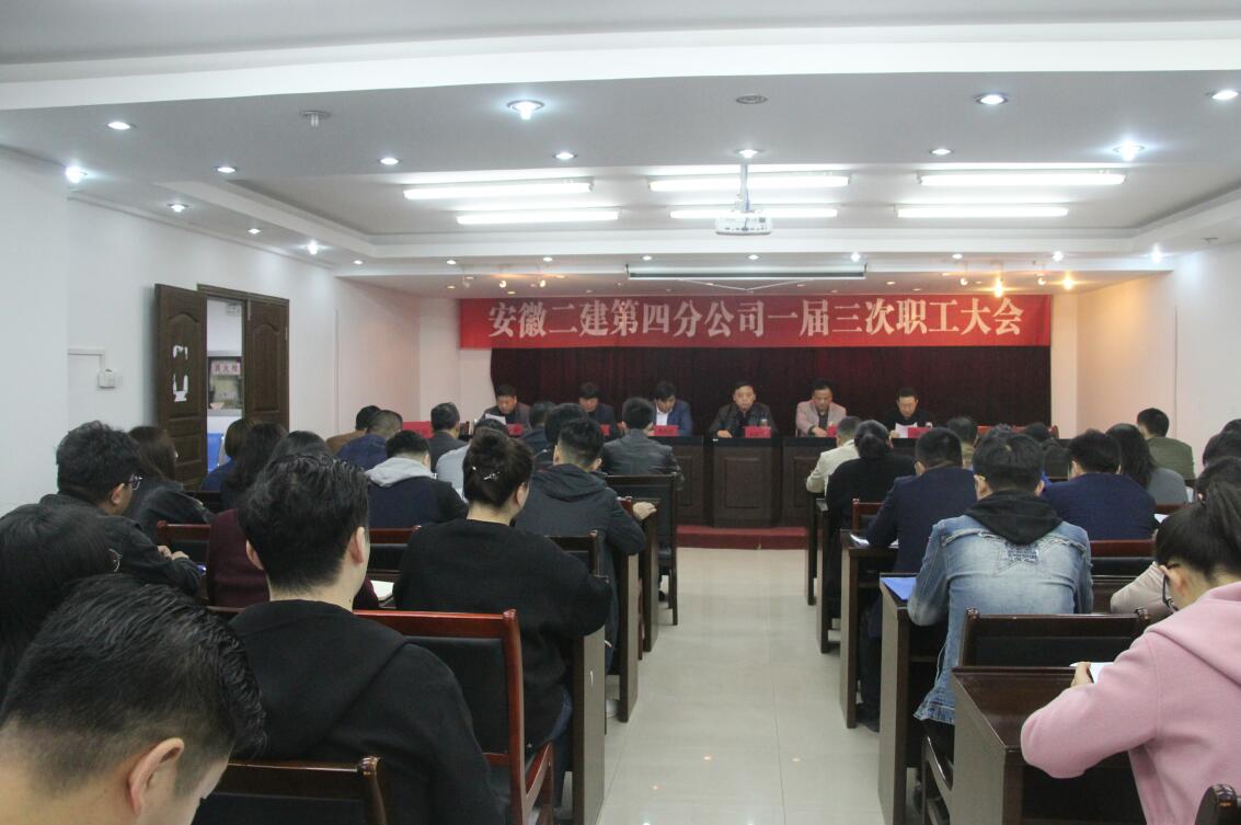 3月22日上午,安徽二建四分公司順利召開了一屆次職工大會,公司黨委副書記、紀委書記仇多維,總經理助理、工會副主席蒯家江,黨委工作部主任施用宏到會指導,分公司52名職工參會,支部書記董建民主持大會