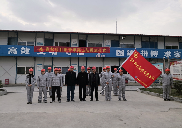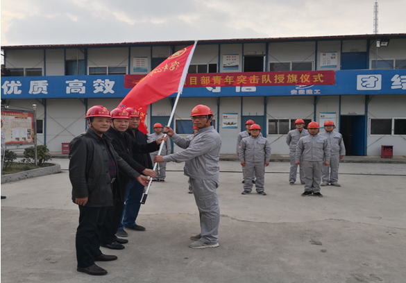 11月20日,宿松項(xiàng)目部結(jié)合公司“大干60天”勞動競賽活動熱潮,在公司工會、團(tuán)委的支持下組建了安徽二建首支“青年突擊隊(duì)”,公司工會主席李林、副主席蒯家江、分公司支部書記陳習(xí)武應(yīng)邀參加了“青年突擊隊(duì)”授旗儀式并進(jìn)行授旗。