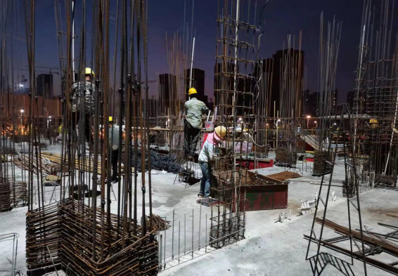 站在±0.0水平面上,上有樓層剛剛起步,下有地庫正在延伸,抬頭可見不斷升高的樓層緊逼著塔吊一升再升,低頭可見基坑里的挖掘機揮舞著鐵臂搶挖土方。在這里,我們見證過木工鐵錘齊揮,只為一天之內搶出樓層頂板;在這里,我們見證過鋼筋工彎腰共綁鋼筋,只為確保能早些澆筑混凝土;在這里,我們見證過瓦工交替澆砼兩天兩夜,只為第三天的煥然一新。我們尊敬參與項目建設的每一位勞動者,深知項目成果是大家用辛勤的汗水換來的,在確保安全、質量和文明施工的前提下,項目全體成員以更加飽滿的熱情和堅定的信念,為全面完成“學黨史、保安康、搶工期、爭一流”勞動競賽目標任務凝心聚力、全力以赴。