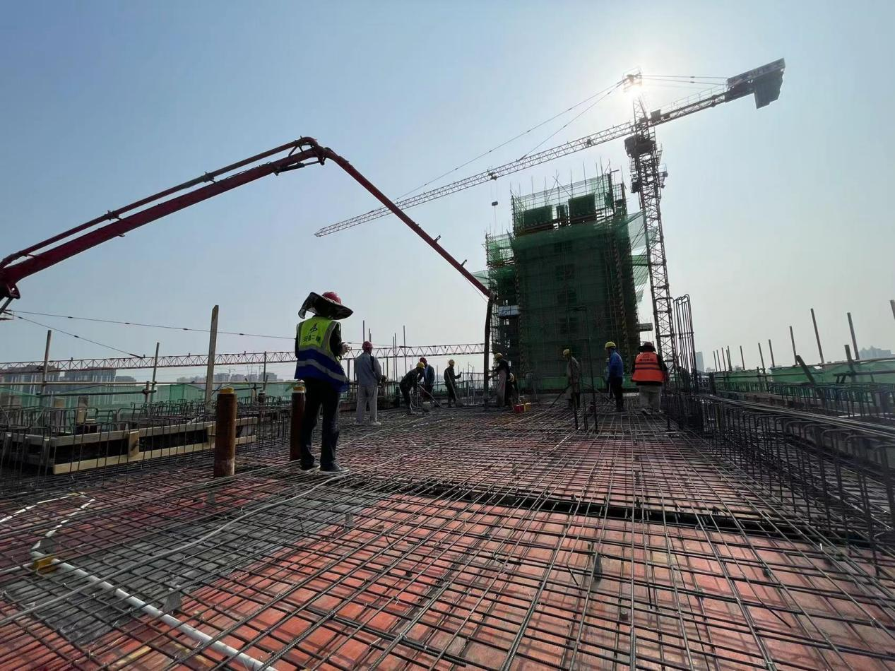 各主樓拔地而起,各單體結(jié)構(gòu)以五天一層的澆筑速度穩(wěn)步攀升。隨著6#、9#、10#的封頂,施工現(xiàn)場也正式進入二次結(jié)構(gòu)施工階段。土方開挖、混凝土澆筑、屋面構(gòu)架施工、墻體砌筑有序穿插施工,一臺臺施工升降機的安裝,猶如雨后春筍破土而出、鏗鏘有力,施工現(xiàn)場又掀起一輪新的大干熱潮。
