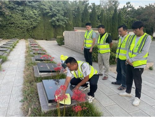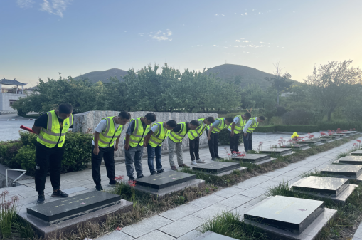 安徽二建公司項目員工在淮北市杜集區革命烈士陵園敬獻鮮花,深切緬懷革命先烈